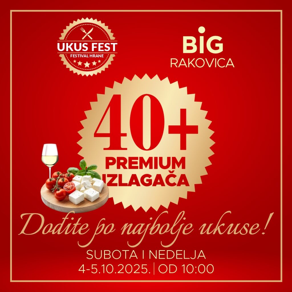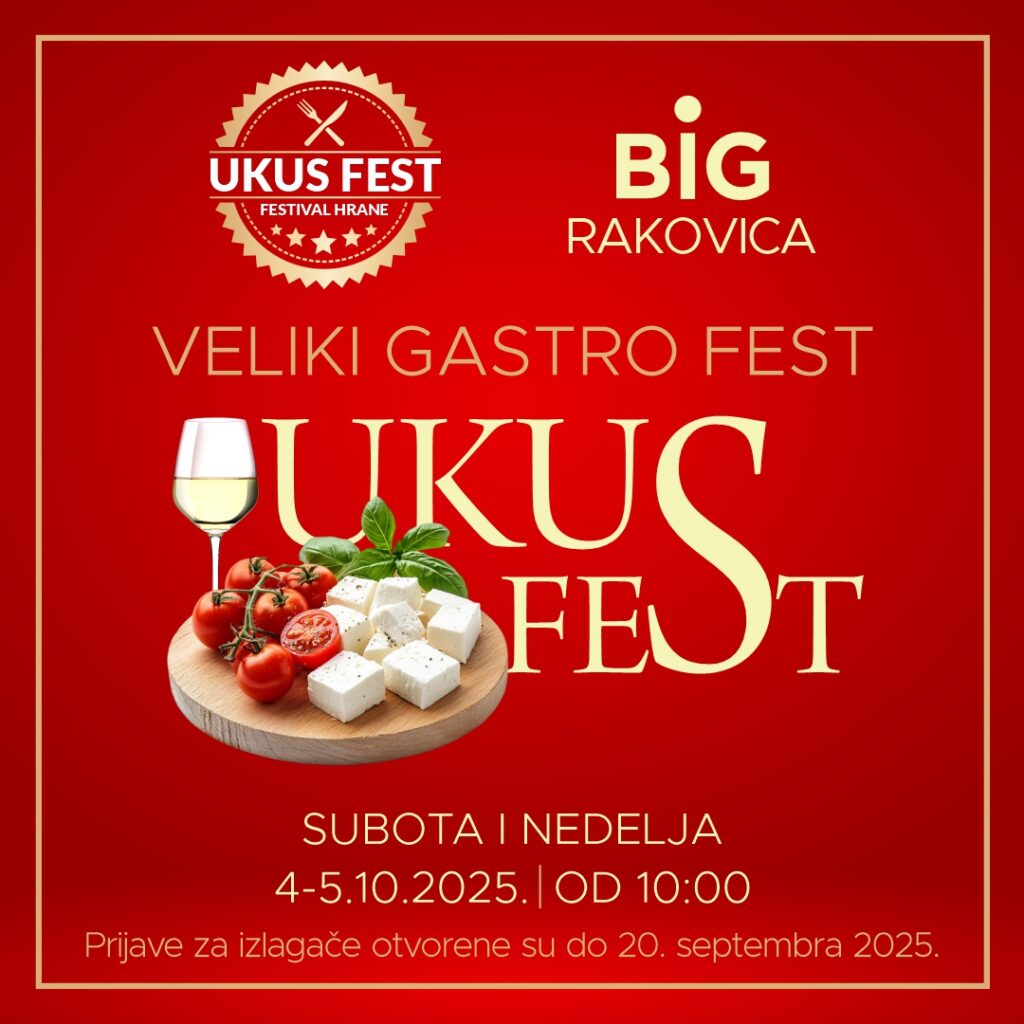 „Jesenji Ukus Fest“, festival domaće hrane i pića, održaće se 4. i 5. oktobra 2025. od 10h do 20h u Šoping centru Big Rakovica. Na manifestaciji će se predstaviti 40 i više domaćih proizvođača hrane i pića iz Srbije i regiona.